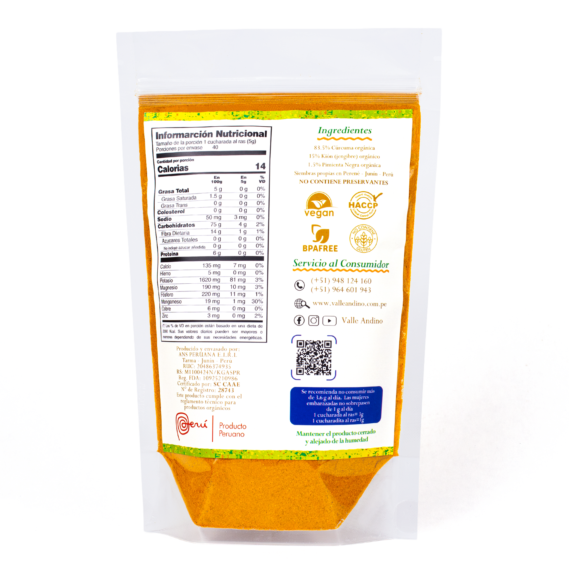 - Mezcla de Cúrcuma, Jengibre y pimienta negra en polvo, procesado en fresco, 100% crudo.
